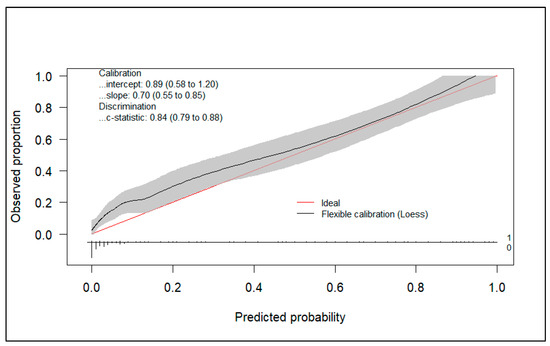 - De Cock, B.; Nieboer, D.; Van Calster, B.; Steyerberg, E.W.; Vergouwe, Y. The Calibrationcurves Package: Assessing the Agreement Between Observed Outcomes and Predictions. R Package Version 2.0.3. 2023. Available online: https://cran.r-project.org/package=CalibrationCurves (accessed on 7 February 2025).