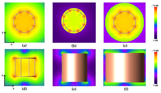 As can be seen in Figure 4, the presence of the shield slightly decreases the magnetic field homogeneity in the transverse plane, as yet verified with the method of images [47]. By comparing the plots of the simulated magnetic field for the loaded wire coil with those obtained from the experimental acquisition (Figure 5), it is possible to verify the great accuracy of the full-wave simulation.