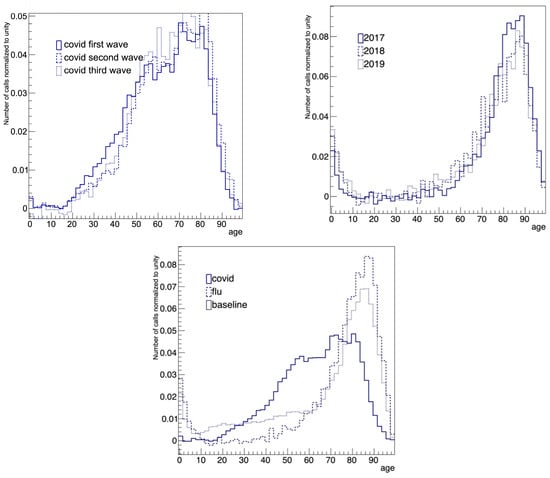 In the original publication [], there was a mistake in Figure 5 as published. The top right panel representing the pattern of patients’ age for flu during three pre-COVID-19 years was displayed twice, so the left panel has been amended to represent the age patterns of three COVID-19 waves. The corrected Figure 5 appears below. The authors state that the scientific conclusions are unaffected. This correction was approved by the Academic Editor. The original publication has also been updated.
