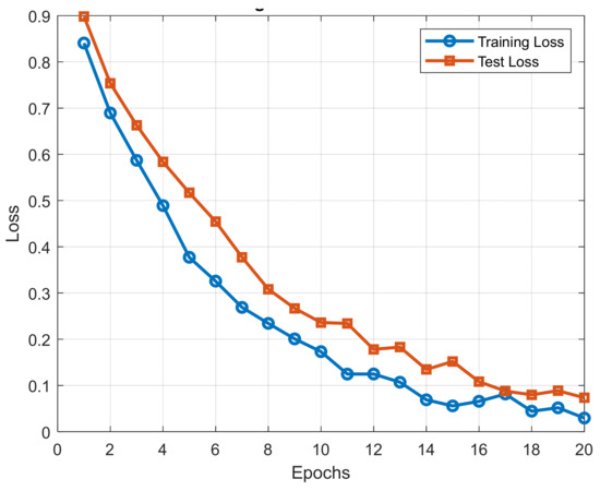 The CNN model was trained using a supervised learning approach, with the objective of minimizing a predefined loss function, typically cross-entropy loss, between predicted and ground truth labels. We applied stochastic gradient descent (SGD) with an Adam optimizer and set a suitable learning rate with momentum to optimize the model. During training, performance indicators, such as accuracy, loss, and validation metrics, were assessed to identify model convergence and prevent overfitting.