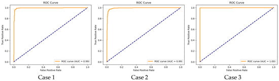 The AUC is nearly 0.99 for both case 1 and case 2, indicating that our proposed CNN model is effectively leveraging the complex patterns from EEG signals to accurately identify PD patients from non-PD patients, suppressing the performance of the conventional SVM model. For Dataset-2 (case 3), the model demonstrates exceptional performance, perfectly discriminating the PD patients from non-PD patients. The high AUC value (AUC “1”) confirms the robustness and accuracy of the model.