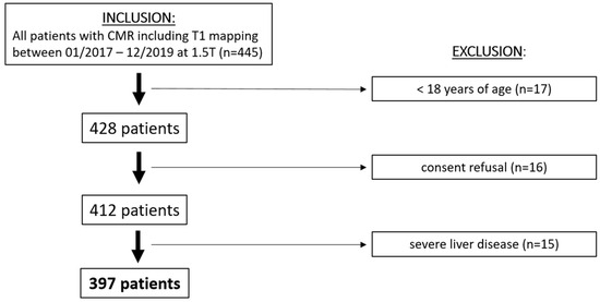 - Mascherbauer, K.; Donà, C.; Koschutnik, M.; Dannenberg, V.; Nitsche, C.; Duca, F.; Heitzinger, G.; Halavina, K.; Steinacher, E.; Kronberger, C.; et al. Hepatic T1-Time Predicts Cardiovascular Risk in All-Comers Referred for Cardiovascular Magnetic Resonance: A Post-Hoc Analysis. Circ. Cardiovasc. Imaging 2022, 15, e014716. [Google Scholar] [CrossRef]