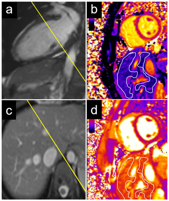 - Ide, Y.; Gabbert, D.D.; Hansen, J.H.; Uebing, A.; Voges, I. Liver T1 mapping in Fontan patients and patients with biventricular congenital heart disease—Insights into the effects of venous congestions on diffuse liver disease. Int. J. Cardiovasc. Imaging 2025, 4, 347–358. [Google Scholar] [CrossRef]