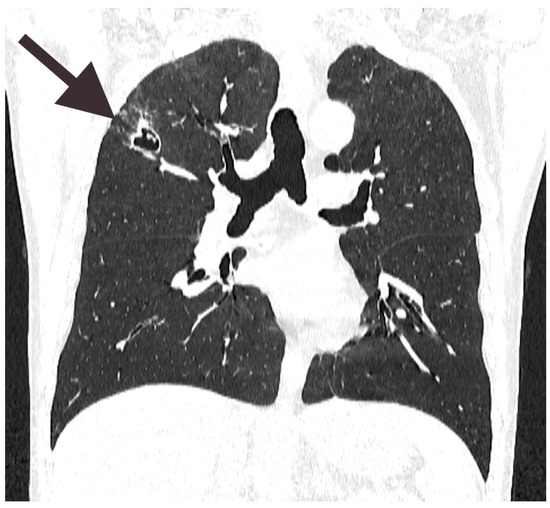 Since the prevalence of fungal lung infections is increasing, certain agents, such as Cladosporium spp., have emerged as unexpected causes. Cladosporium spp. fungi are ubiquitous in environments such as soil, fruits, and wine corks; they are a part of the normal human skin flora; and they are known respiratory allergens [2,3]. They have been associated with “salami brusher’s disease” [4] and may act as plant pathogens and contaminants of heritage materials. However, this fungus very rarely causes superficial invasive infections, such as keratitis [5].