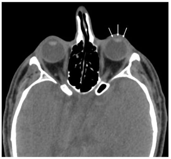 - Kim, S.Y.; Lee, J.H.; Lee, Y.J.; Choi, B.S.; Choi, J.W.; In, H.S.; Kim, S.M.; Baek, J.H. Diagnostic value of the anterior chamber depth of a globe on CT for detecting open-globe injury. Eur. Radiol. 2010, 20, 1079–1084. [Google Scholar] [CrossRef]