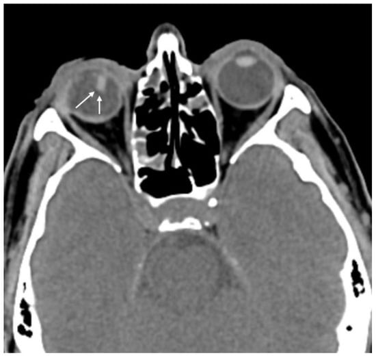 - Arey, M.L.; Mootha, V.V.; Whittemore, A.R.; Chason, D.P.; Blomquist, P.H. Computed tomography in the diagnosis of occult open-globe injuries. Ophthalmology 2007, 114, 1448–1452. [Google Scholar] [CrossRef]