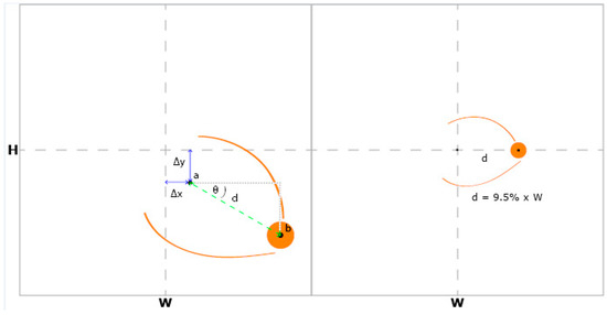 The fluorescein angiogram is shifted by (−Δx, −Δy) to align the fovea (a) with the center of the grid. The image is rotated by θ to align the fovea (a) and the center of the optic disc (b) with the grid’s horizontal axis. The grid is scaled by 9.5/d so that the distance (d) between the fovea (a) and the center of the optic disc (b) is 9.5% of the grid’s width.