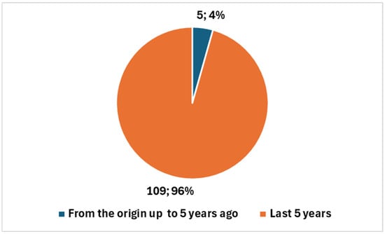 Distribution of AI-related publications in interventional radiology—comparison between the last five years and earlier periods.