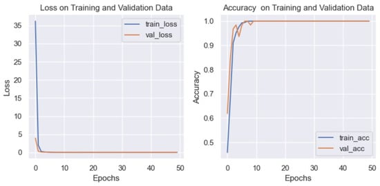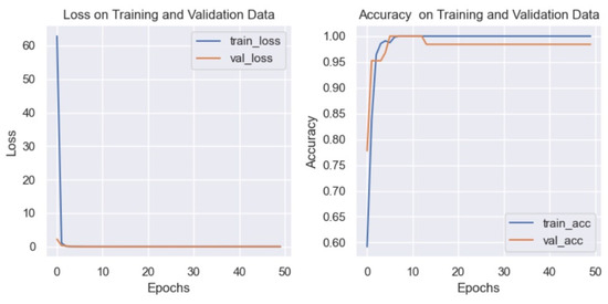 - In the multilayer perceptron stage, we proposed two hidden layers with 100 and 23 neurons, respectively, with ‘relu’ activation function and one output layer with ‘SoftMax’ activation function. Adam optimizer was applied. The loss function was categorical cross-entropy, and we proposed 50 epochs and a batch size of 50.