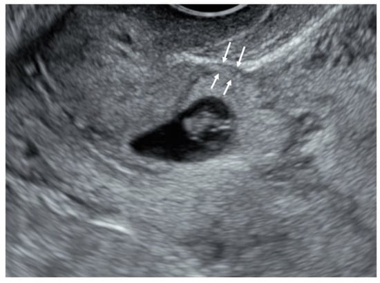 - Cali, G.; Forlani, F.; Timor-Tritsch, I.E.; Palacios-Jaraquemada, J.; Minneci, G.; D’Antonio, F. Natural history of Cesarean scar pregnancy on prenatal ultrasound: The crossover sign. Ultrasound Obstet. Gynecol. 2017, 50, 100–104. [Google Scholar] [CrossRef]