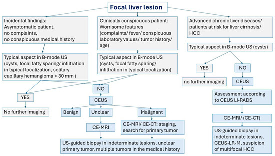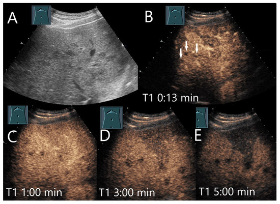 - Schuldes, M.; Weickert, U. Contrast-enhanced ultrasound in suspected liver metastases. Dtsch. Med. Wochenschr. 2011, 136, 1255–1256. [Google Scholar] [CrossRef]