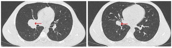 - Travis, W.D.; Brambilla, E.; Nicholson, A.G.; Yatabe, Y.; Austin, J.H.M.; Beasley, M.B.; Chirieac, L.R.; Dacic, S.; Duhig, E.; Flieder, D.B.; et al. The 2015 World Health Organization Classification of Lung Tumors: Impact of Genetic, Clinical and Radiologic Advances Since the 2004 Classification. J. Thorac. Oncol. 2015, 10, 1243–1260. [Google Scholar] [CrossRef] [PubMed]