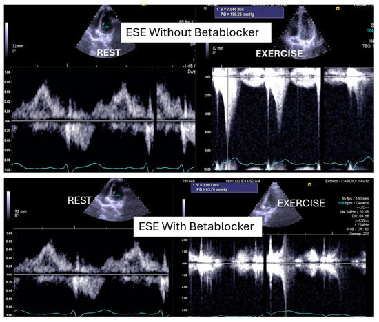 - Cotrim, C.; Almeida, A.R.; Miranda, R.; Almeida, A.G.; Cotrim, H.; Picano, E.; Carrageta, M. Stress-induced intraventricular gradients in symptomatic athletes during upright exercise continuous wave Doppler echocardiography. Am. J. Cardiol. 2010, 106, 1808–1812. [Google Scholar] [CrossRef] [PubMed]