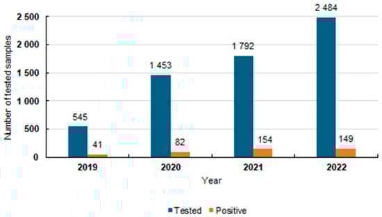 Analysis of tested samples between 2019 and 2022 with positive results for MTBC via the BD MAX assay.