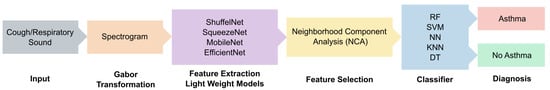 It is especially noted that these models were trained on the ImageNet platform, commonly used in several other studies [10,20,21,22]. In particular, ImageNet is a large-scale, diverse dataset that has over 14 million labelled images widely used as a benchmark for the training and evaluation of deep learning models in the computer vision area. Its extensive coverage and pre-trained models can enable an effective transfer learning process, making it a foundational resource for advancing research in real-world applications. These lightweight models were also selected based on their computational efficiency, which is beneficial for mobile and edge devices with limited processing power. The specific importance of each lightweight model used in designing an automated system for asthma detection using respiratory and cough sound signals is as follows: