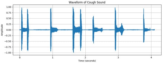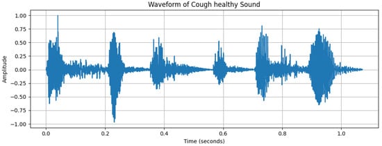 Waveform of a cough sound from a healthy subject, with the x-axis representing time (s) and the y-axis representing amplitude.