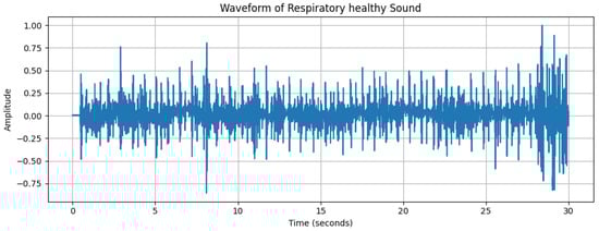 Waveform of a respiratory sound from a healthy subject, with the x-axis representing time (s) and the y-axis representing amplitude.