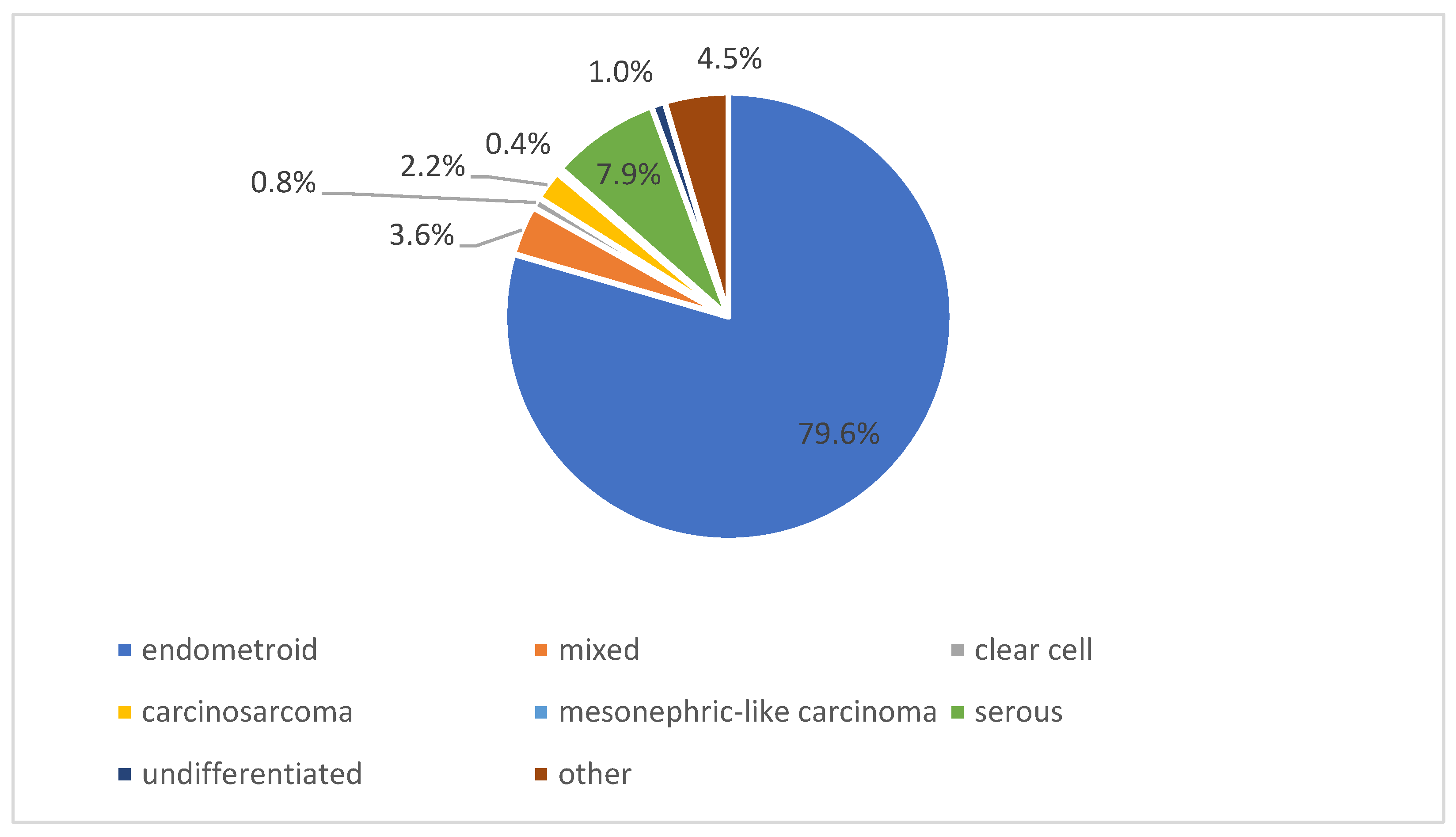 | T stage | T1a with myometrial invasion: 146 (29.0%) T1a without myometrial invasion: 108 (21.4%) T1b: 145 (28.8%) T2: 49 (9.7%) T3a: 23 (4.6%) T3b: 29 (5.8%) T4: 3 (0.6%) unknown: 1 (0.2%) |