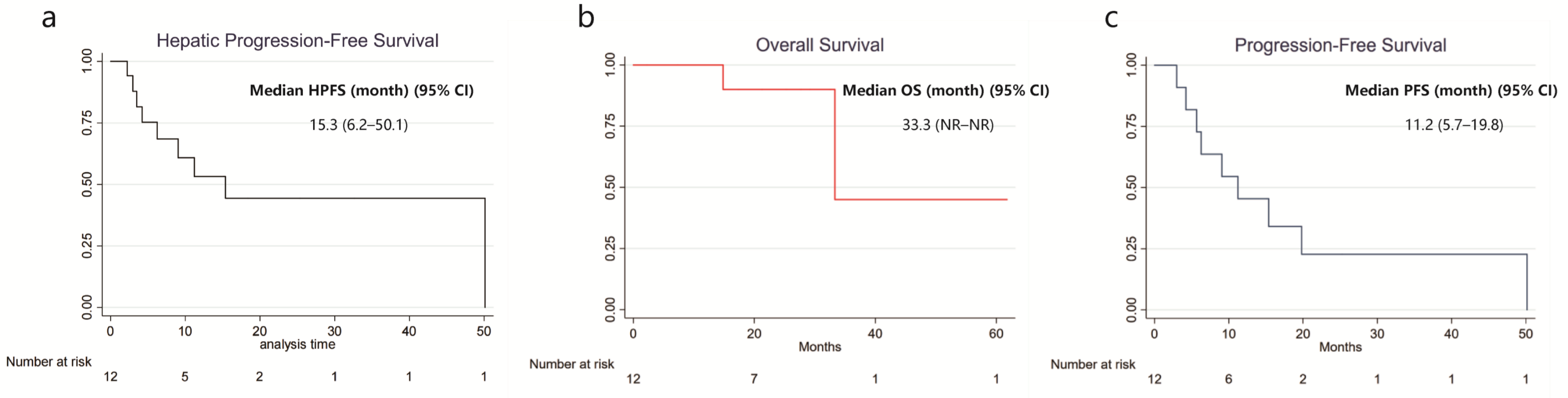 | Frilling et al., 2019 [44] | UK | RS | 2007–2017 | 24 | 70.8/25.0/0.0/4.2/0.0 | 62.5 | 45.8/41.7/0/12.5 | NR | 37.5 | OS, PFS, TR |