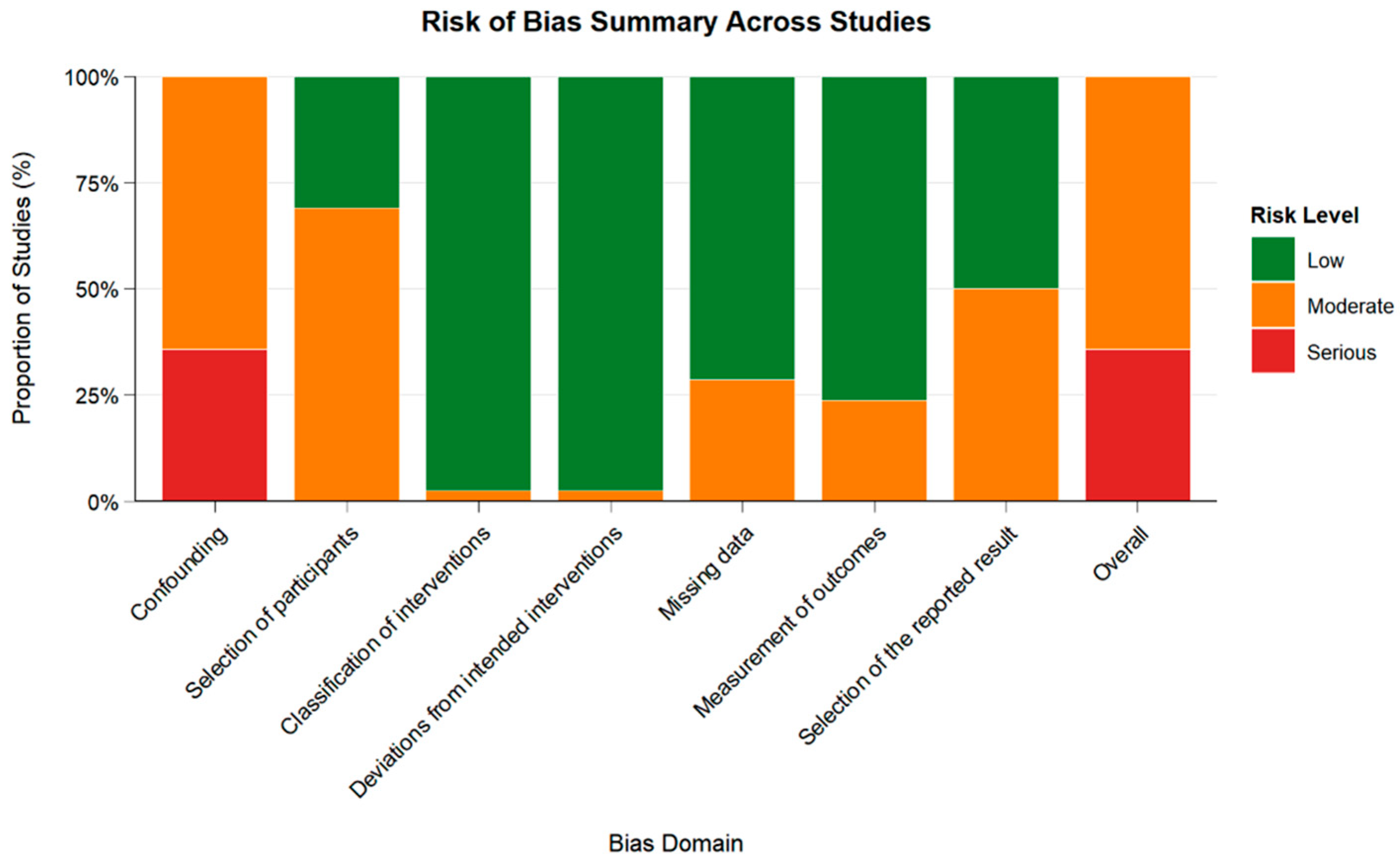 3.2.8. Assessment of Heterogeneity, Publication Bias, and Robustness