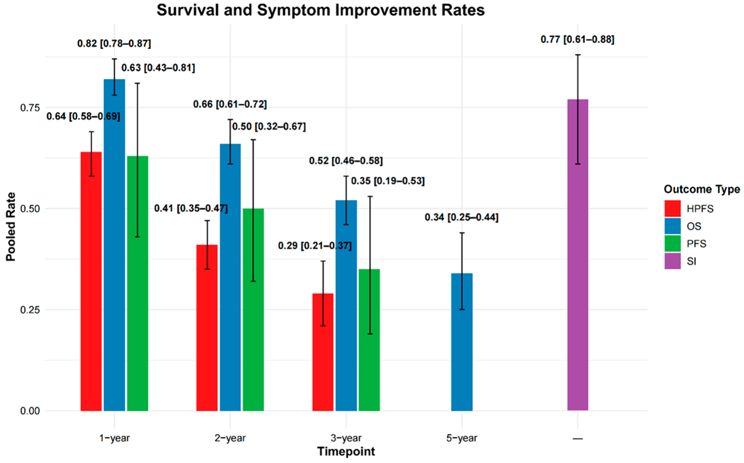 | Gordon et al., 2025 [58] | USA | RS | 2009–2021 | 18 | 28/33/28/0/11 | NR | 39/44/17/0 | 83/17/0 | 67 | AE, OS, PFS, TR |