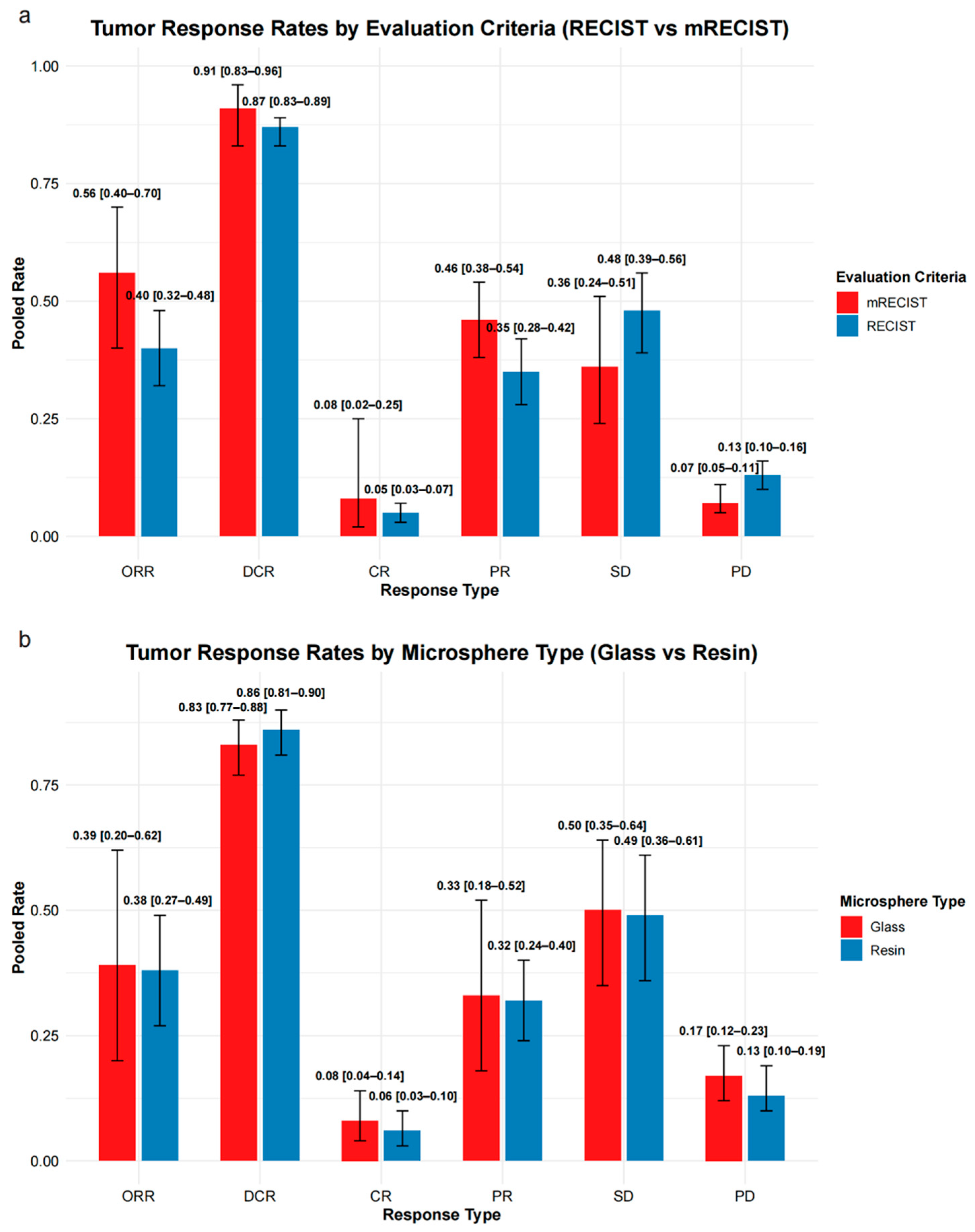 3.2.5. Subgroup Analysis of Tumor Response by Microsphere Type