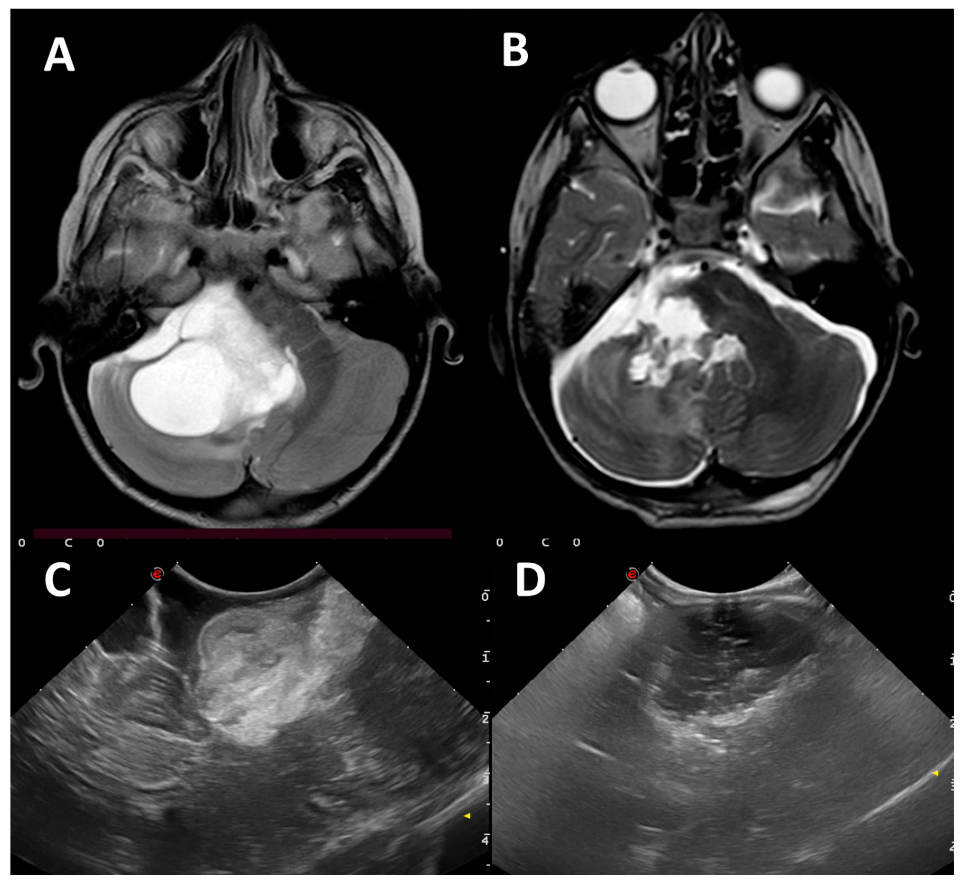 - Frassanito, P.; Stifano, V.; Bianchi, F.; Tamburrini, G.; Massimi, L. Enhancing the Reliability of Intraoperative Ultrasound in Pediatric Space-Occupying Brain Lesions. Diagnostics 2023, 13, 971. [Google Scholar] [CrossRef] [PubMed]