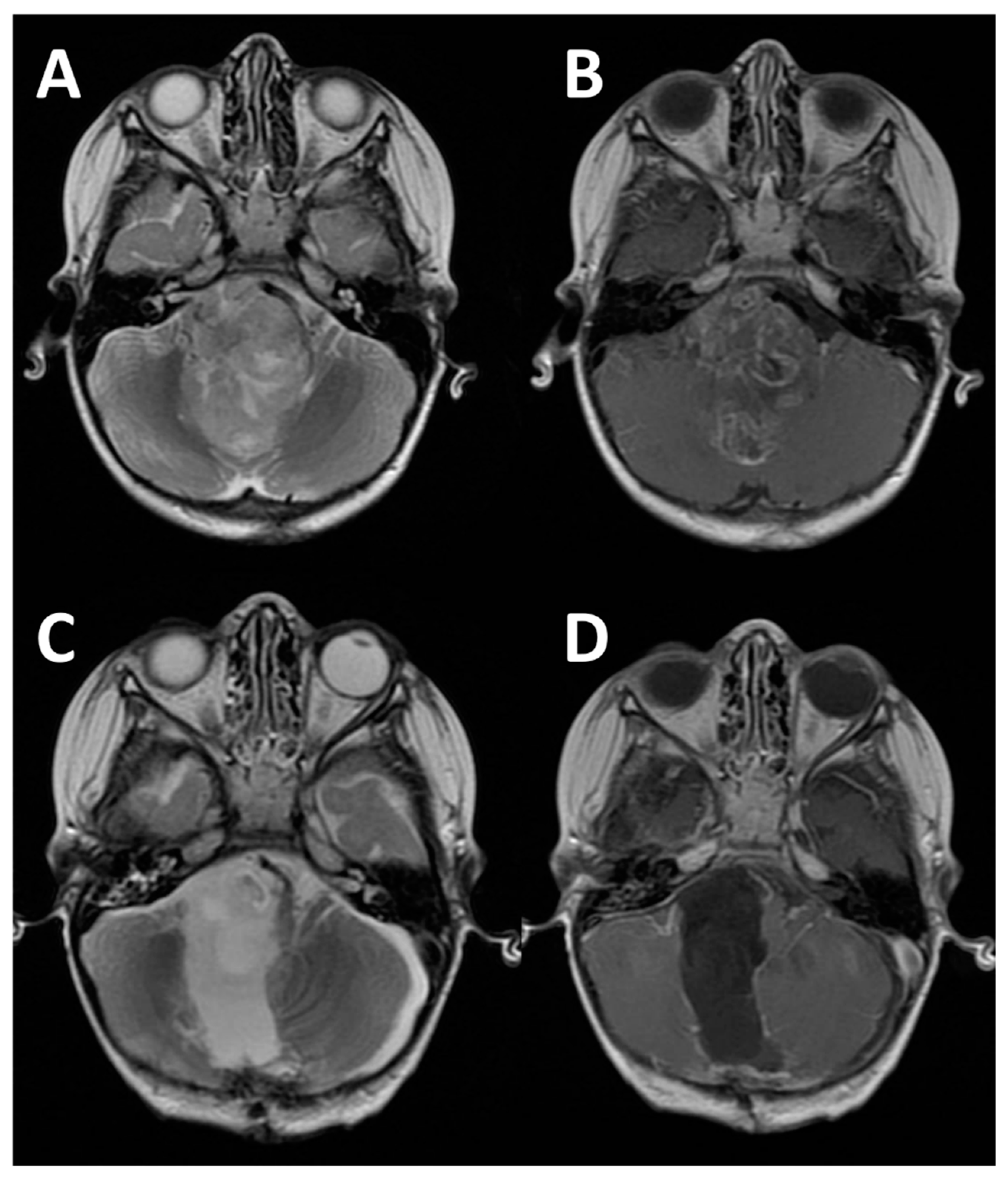 - Phi, J.H.; Wang, K.-C.; Kim, I.-O.; Cheon, J.-E.; Choi, J.W.; Cho, B.-K.; Kim, S.-K. Tumors in the Cerebellopontine Angle in Children: Warning of a High Probability of Malignancy. J. Neurooncol. 2013, 112, 383–391. [Google Scholar] [CrossRef]