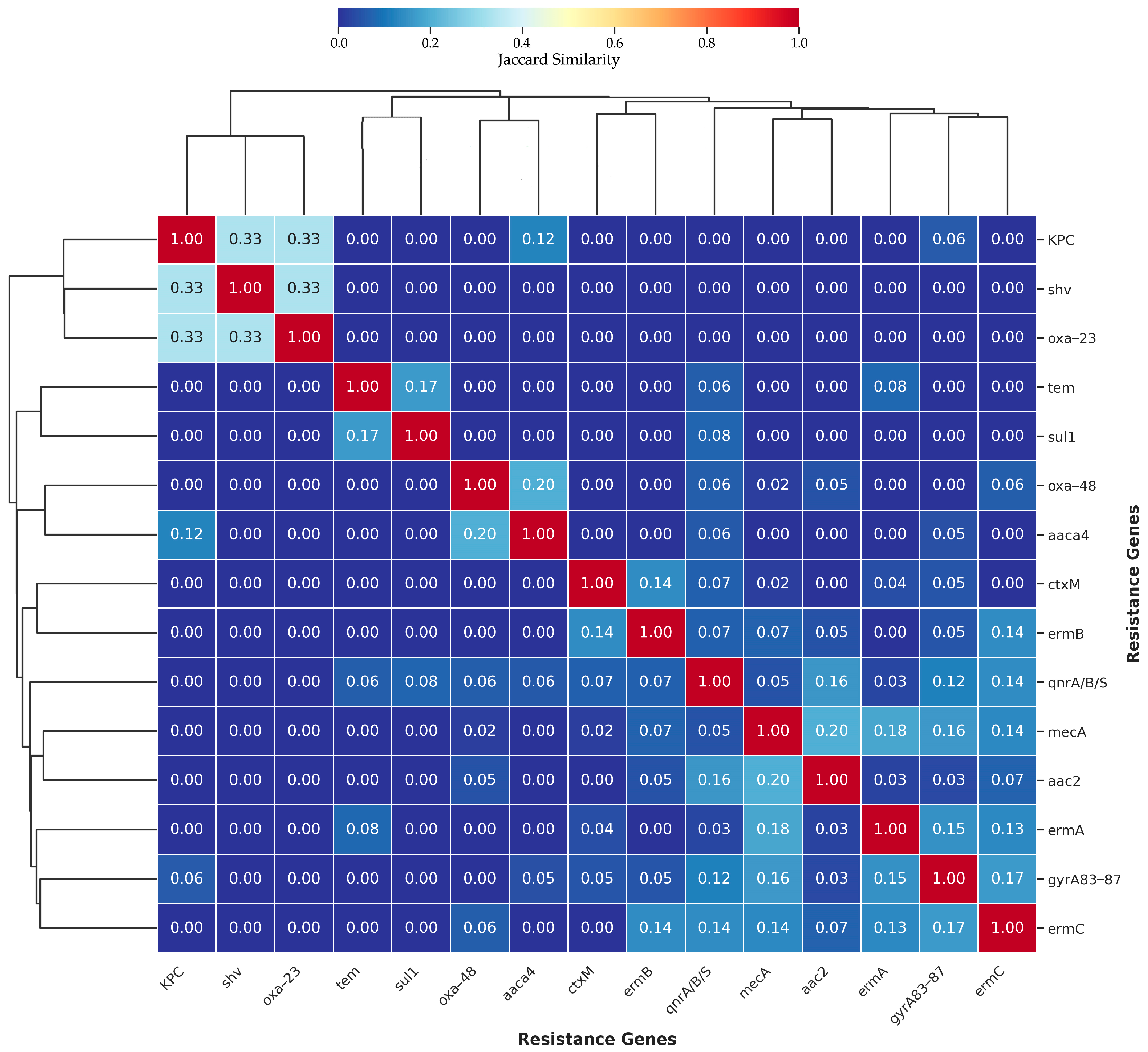 Figure 4. Heatmap of gene co-occurrence patterns (Jaccard Index). Higher values indicate more frequent co-occurrence.