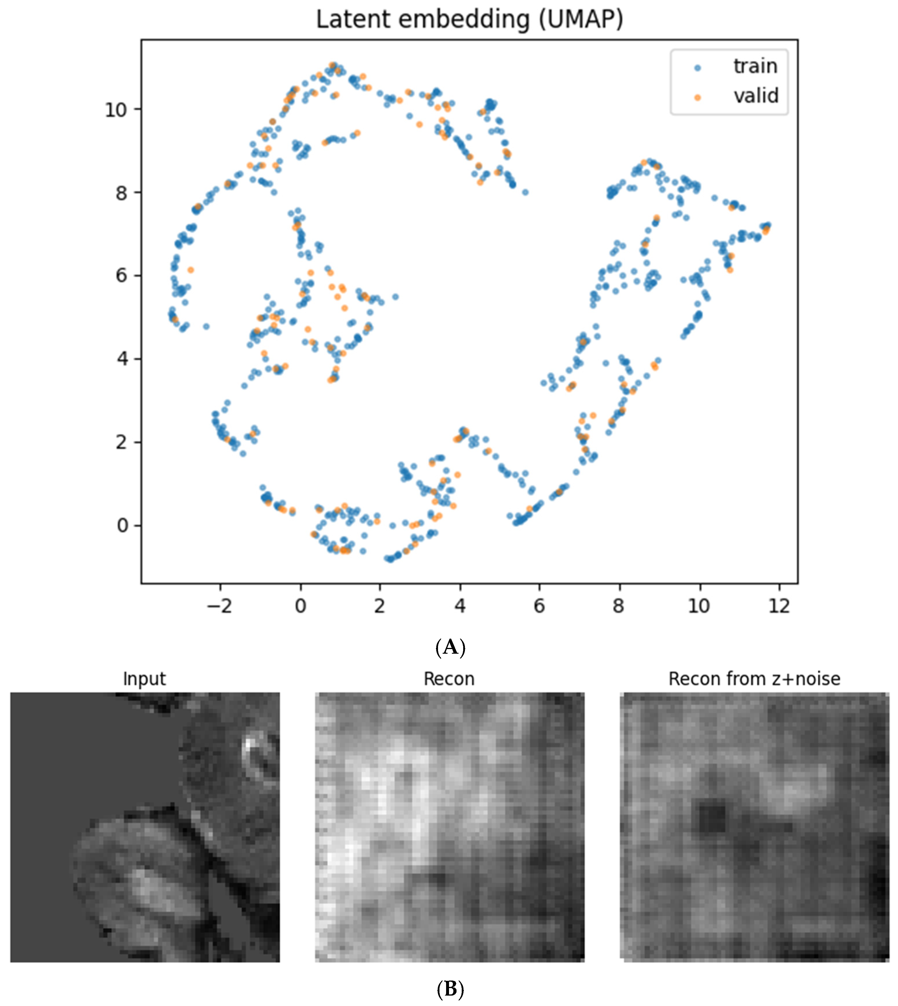 Prospective multi-timepoint cohorts are needed to confirm whether the predicted trajectories correspond to real temporal evolution. Additional limitations include the absence of external validation datasets, the high capacity of the autoencoder (≈8–12 M parameters), and potential model overfitting despite cross-validation and permutation testing. Future work should incorporate multi-institutional datasets, explicit regularization of latent vector fields, and longitudinal follow-up imaging to ensure generalizability and biologic fidelity. The modest sample size and potential biases introduced by patch-based sampling, which may underrepresent the global context, further limit the generalizability of the present findings.
