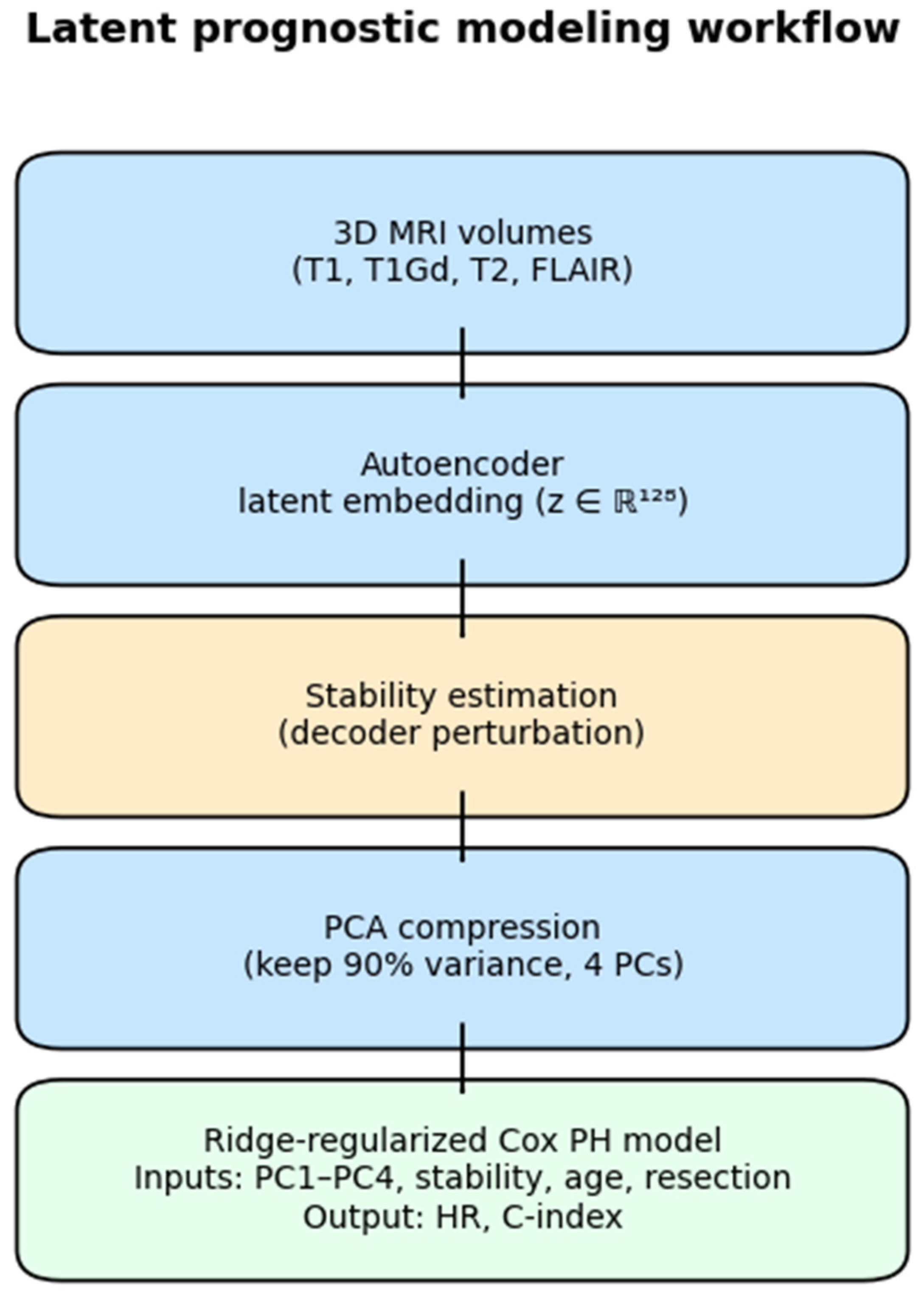 Finally, the overarching objective of this study is to test whether latent embeddings of GBM MRI scans form reproducible, stable clusters (“attractors”) that correlate with patient outcomes and can be modulated through simulated control inputs—thus establishing a bridge between data-driven morphological modeling and dynamical systems approaches in oncology.