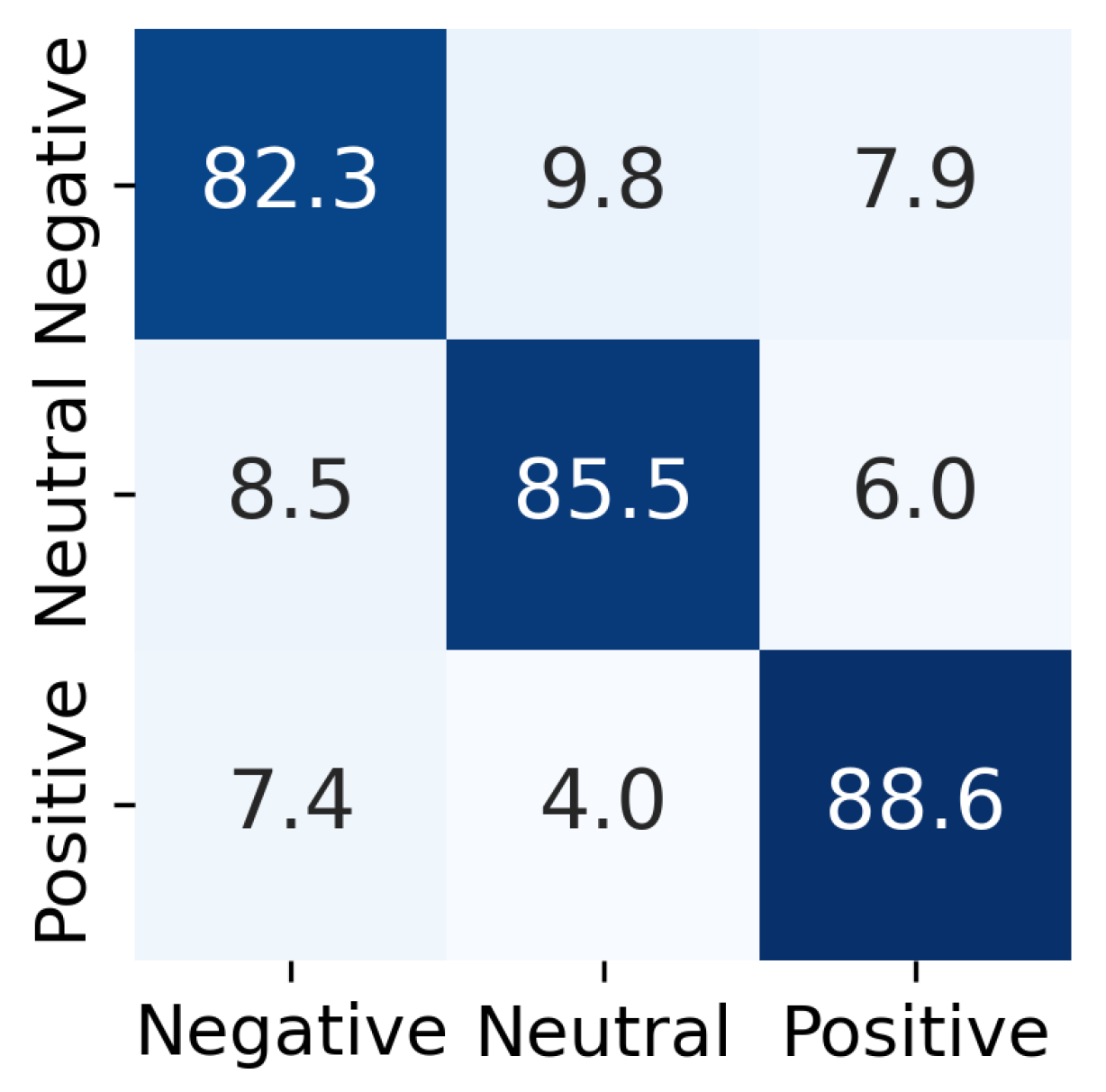 | Model | Negative (%) | Neutral (%) | Positive (%) |