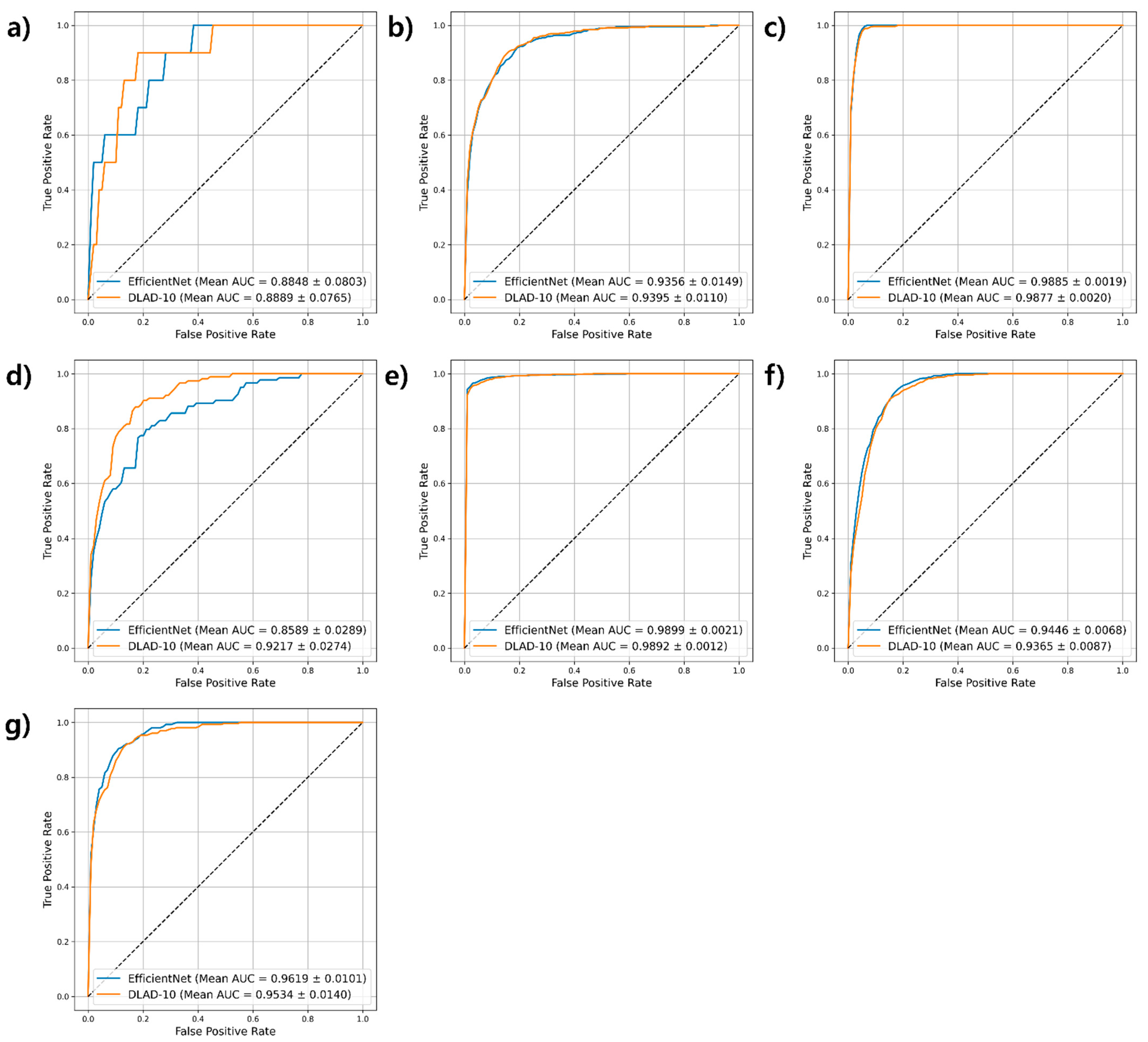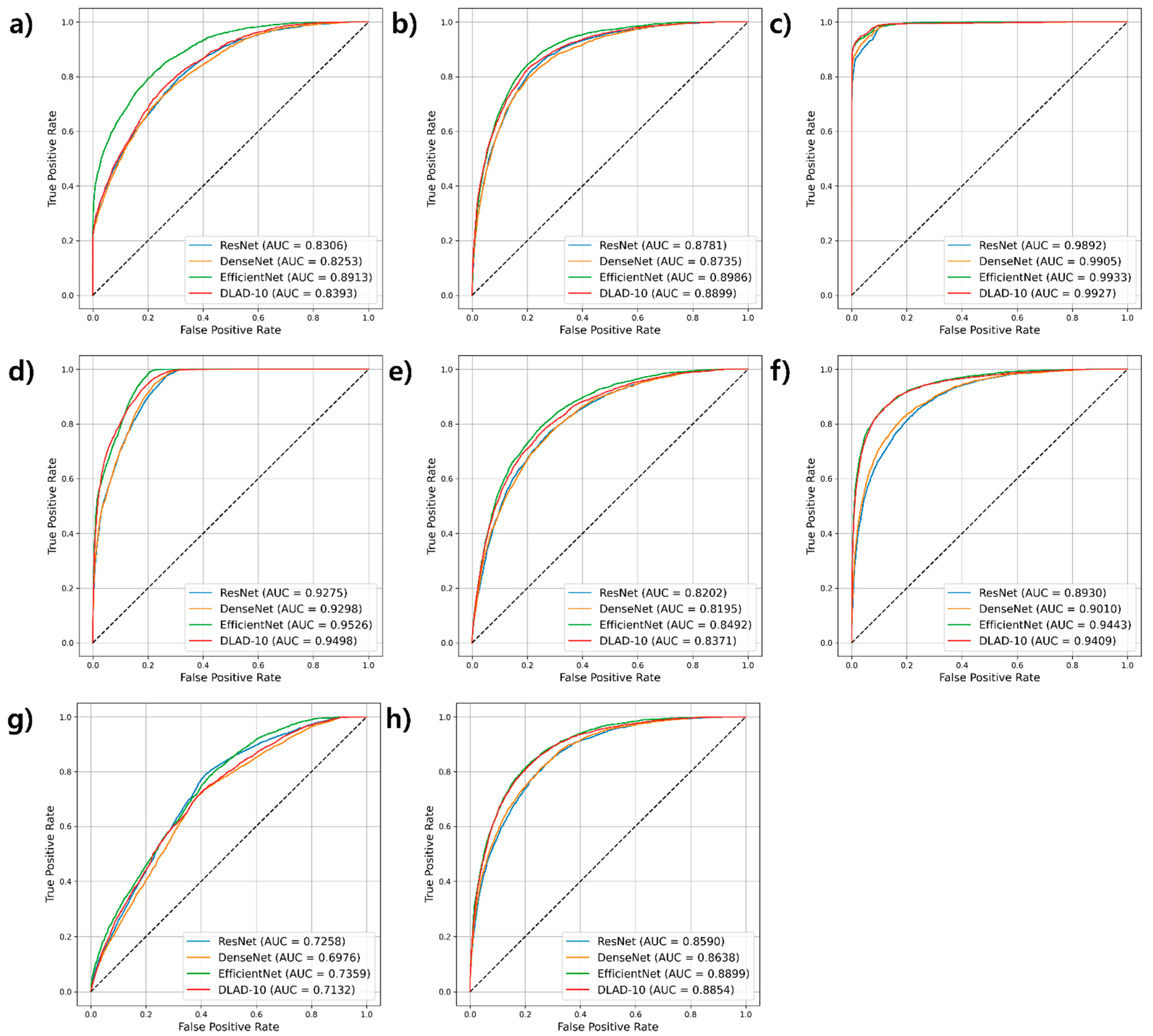 | ResNet | DenseNet | EfficientNet | DLAD-10 | |||||