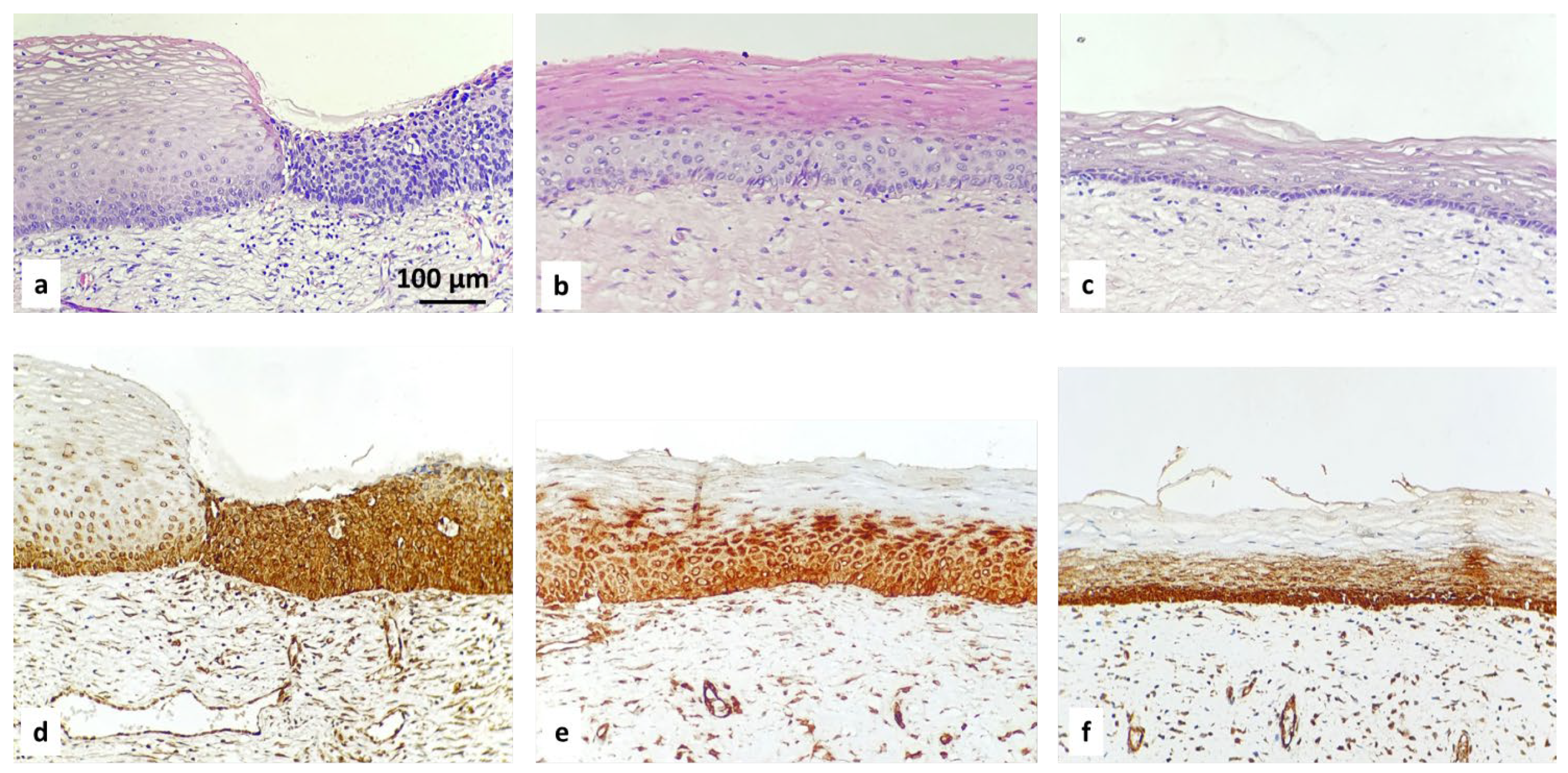 - Diffuse suprabasal expression with moderate to strong intensity in the area of abnormal cells in all CIN cases: