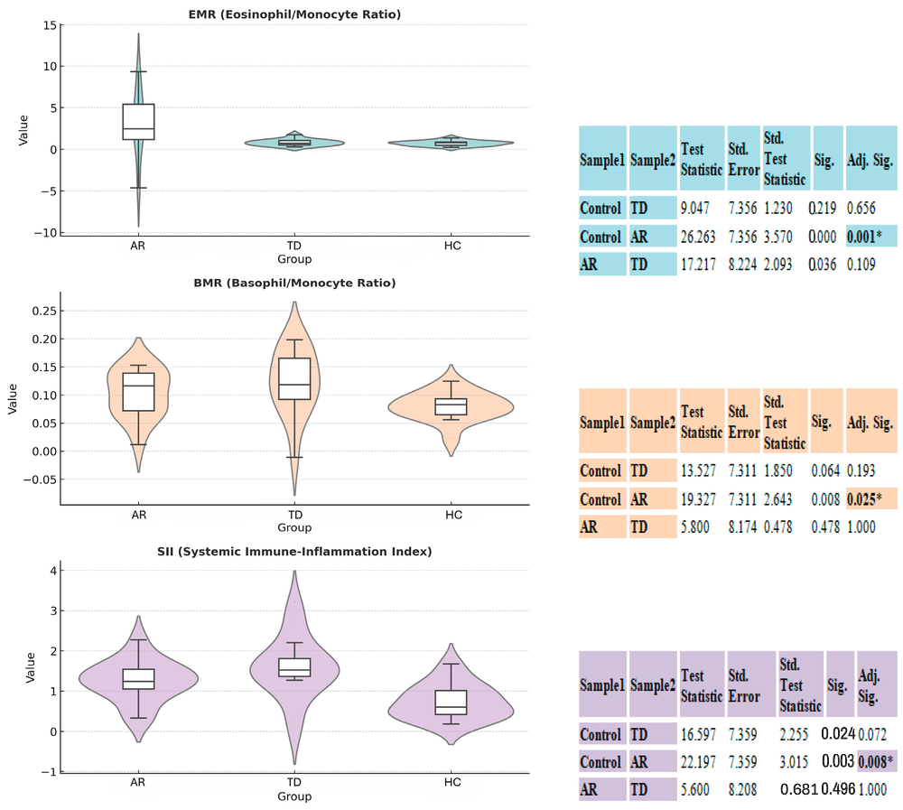 | Variable | AR | TD | HC | Test Statistics | p-Value |