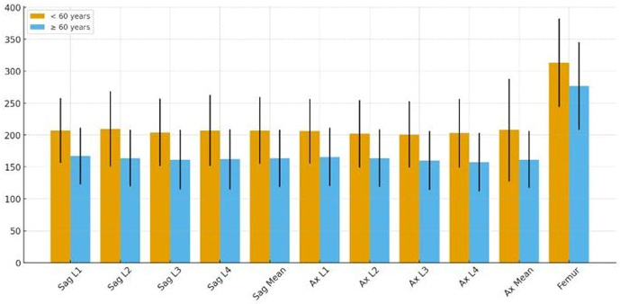 | Sagittal mean HU | 207 ± 52.5 | 164 ± 44.8 | 43.6 (31.6–55.6) | <0.001 |