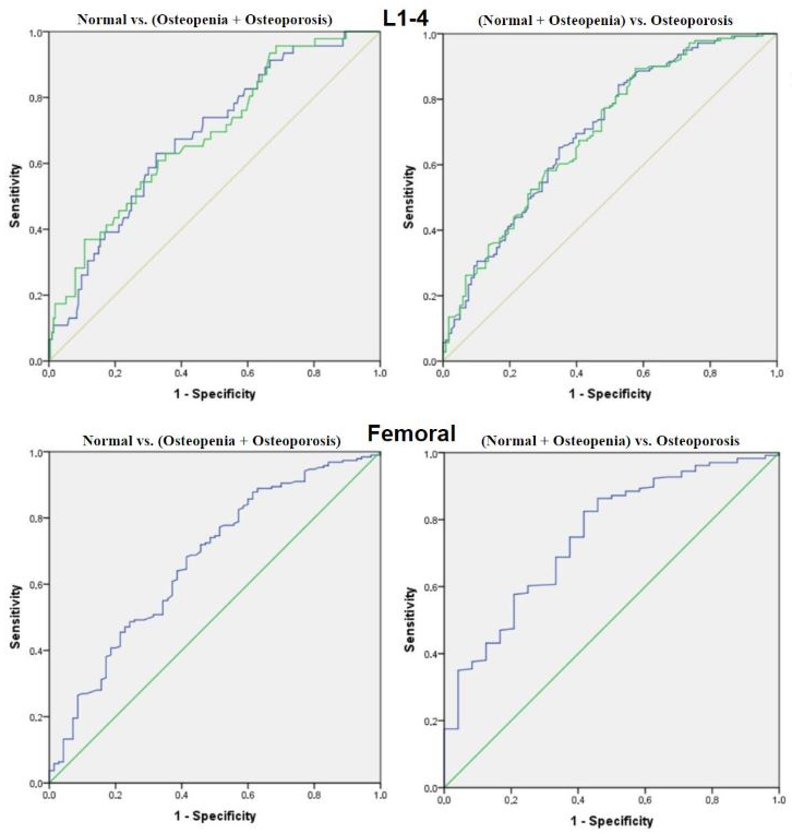 | Femoral HU | 0.75 (0.65–0.85) | <0.001 | 237 | 0.82 | 0.63 | 0.81 | 0.65 |