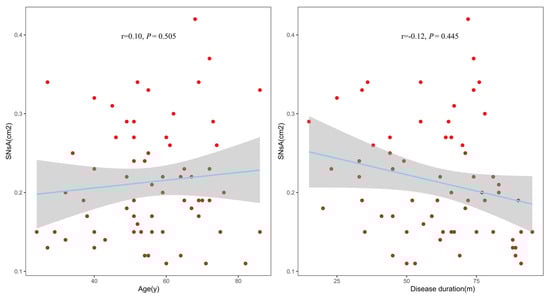 In the ESRD + RLS group, Spearman’s correlation analysis showed no significant associations between SNsA and age (r = 0.10,