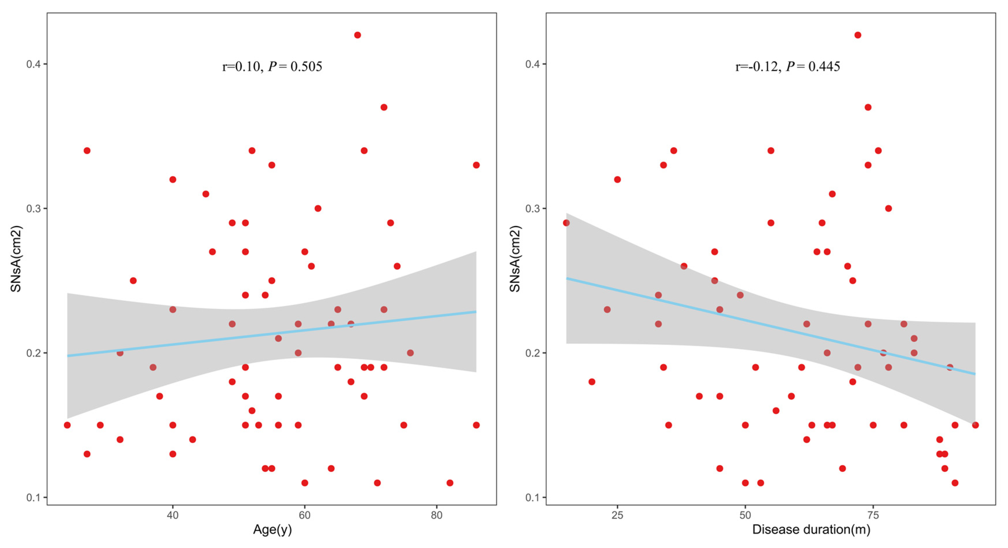 Notably, SNsA was not correlated with age or ESRD duration in the ESRD + RLS group, indicating that SN hypoechogenicity is not a progressive change associated with disease chronicity. Instead, it may serve as a preclinical biomarker for ESRD + RLS, facilitating early diagnosis before the onset of severe symptoms.