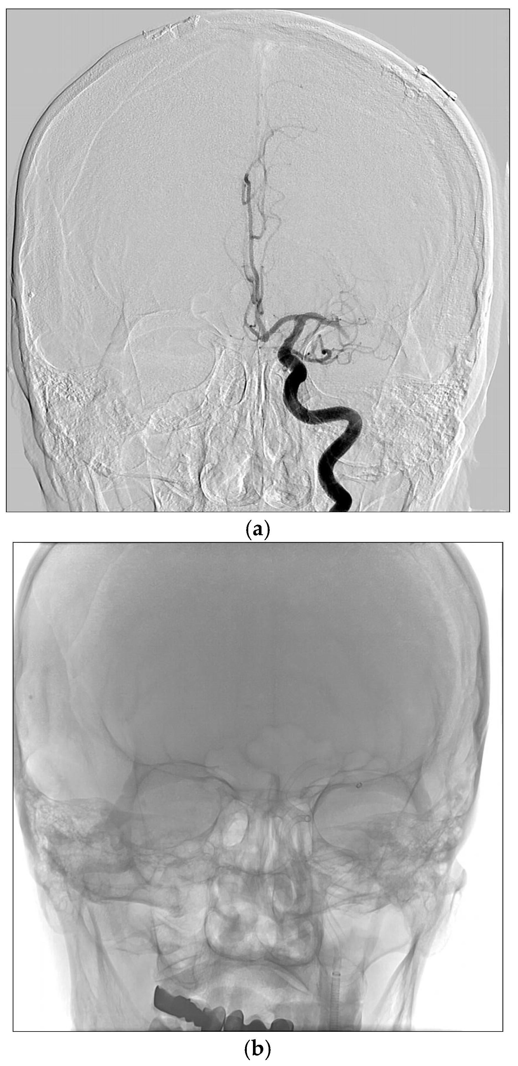 - Yuki, I.; Kan, I.; Vinters, H.V.; Kim, R.H.; Golshan, A.; Vinuela, F.A.; Sayre, J.W.; Murayama, Y.; Vinuela, F. The impact of thromboemboli histology on the performance of a mechanical thrombectomy device. AJNR Am. J. Neuroradiol. 2012, 33, 643–648. [Google Scholar] [CrossRef] [PubMed]