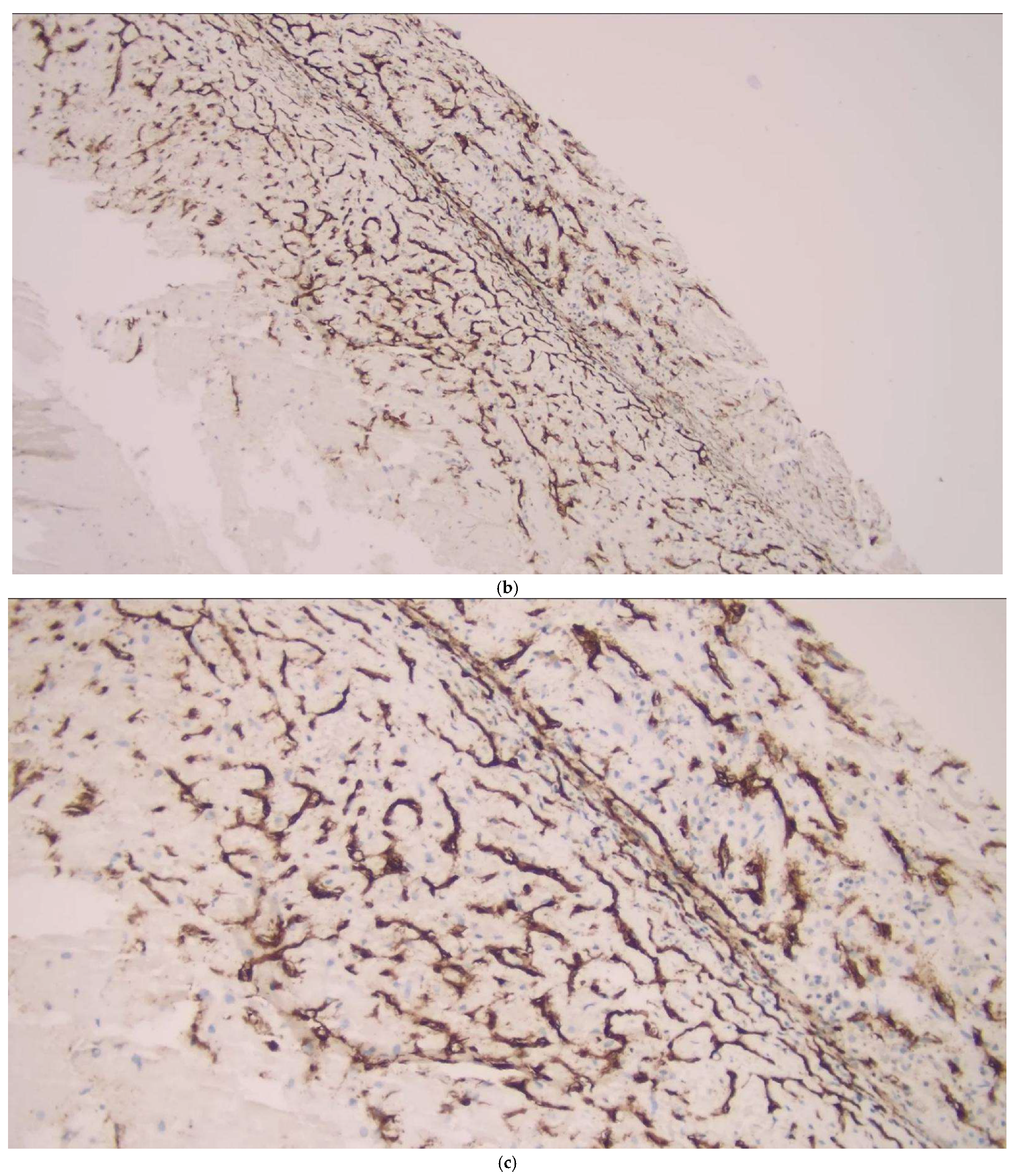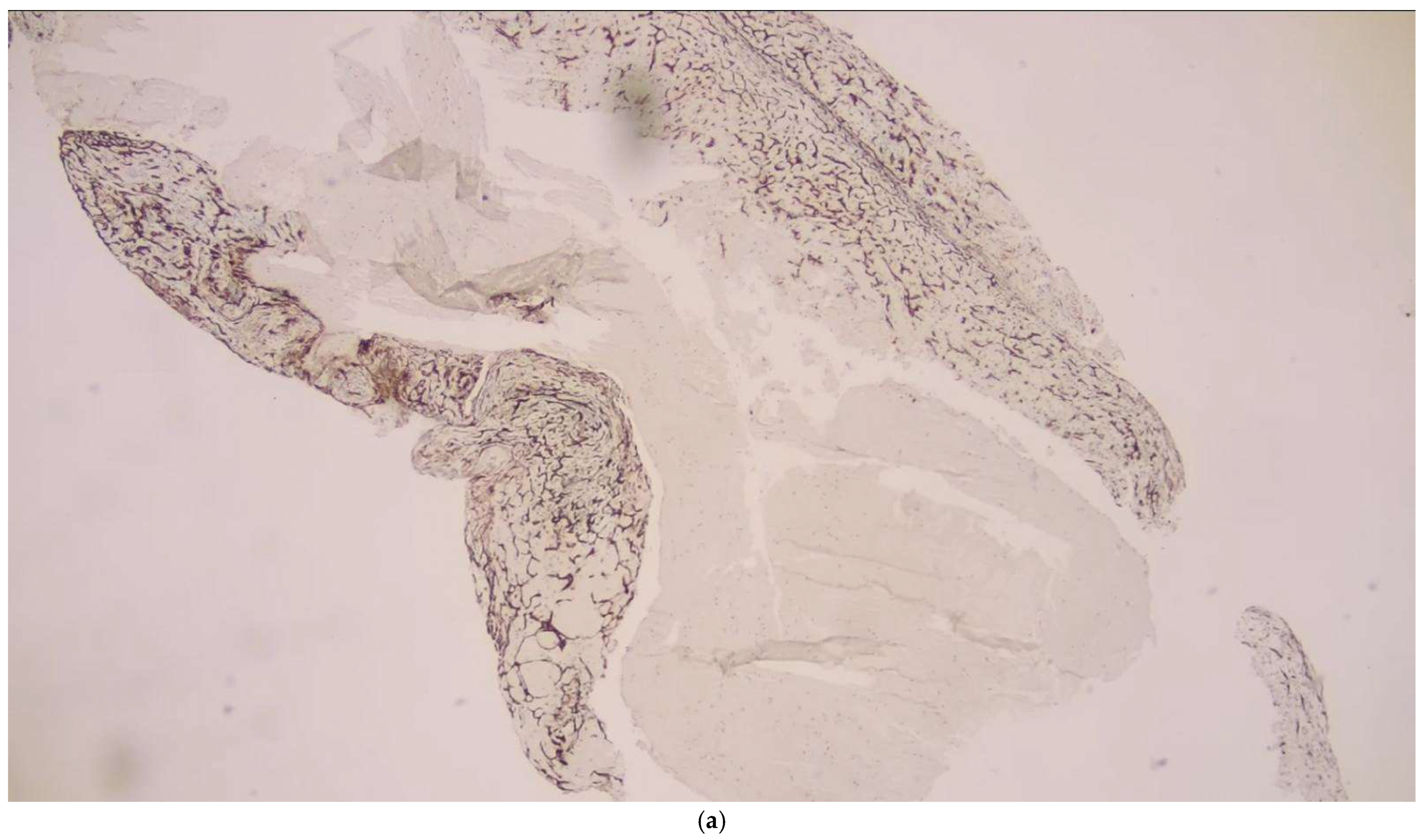 - Pusztaszeri, M.P.; Seelentag, W.; Bosman, F.T. Immunohistochemical expression of endothelial markers CD31, CD34, von Willebrand factor, and Fli-1 in normal human tissues. J. Histochem. Cytochem. 2006, 54, 385–395. [Google Scholar] [CrossRef]
