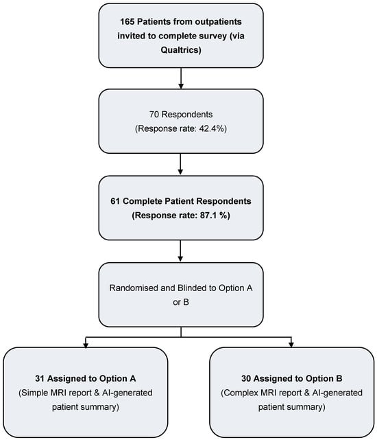 - Anand, E.; Ghersin, I.; Lingam, G.; Pelly, T.; Singer, D.; Tomlinson, C.; Munro, R.E.; Capstick, R.; Antoniou, A.; Hart, A.L.; et al. AI-Generated Patient-Friendly MRI Fistula Summaries: A Pilot Randomised Study. J. Imaging 2025, 11, 302. [Google Scholar] [CrossRef] [PubMed]