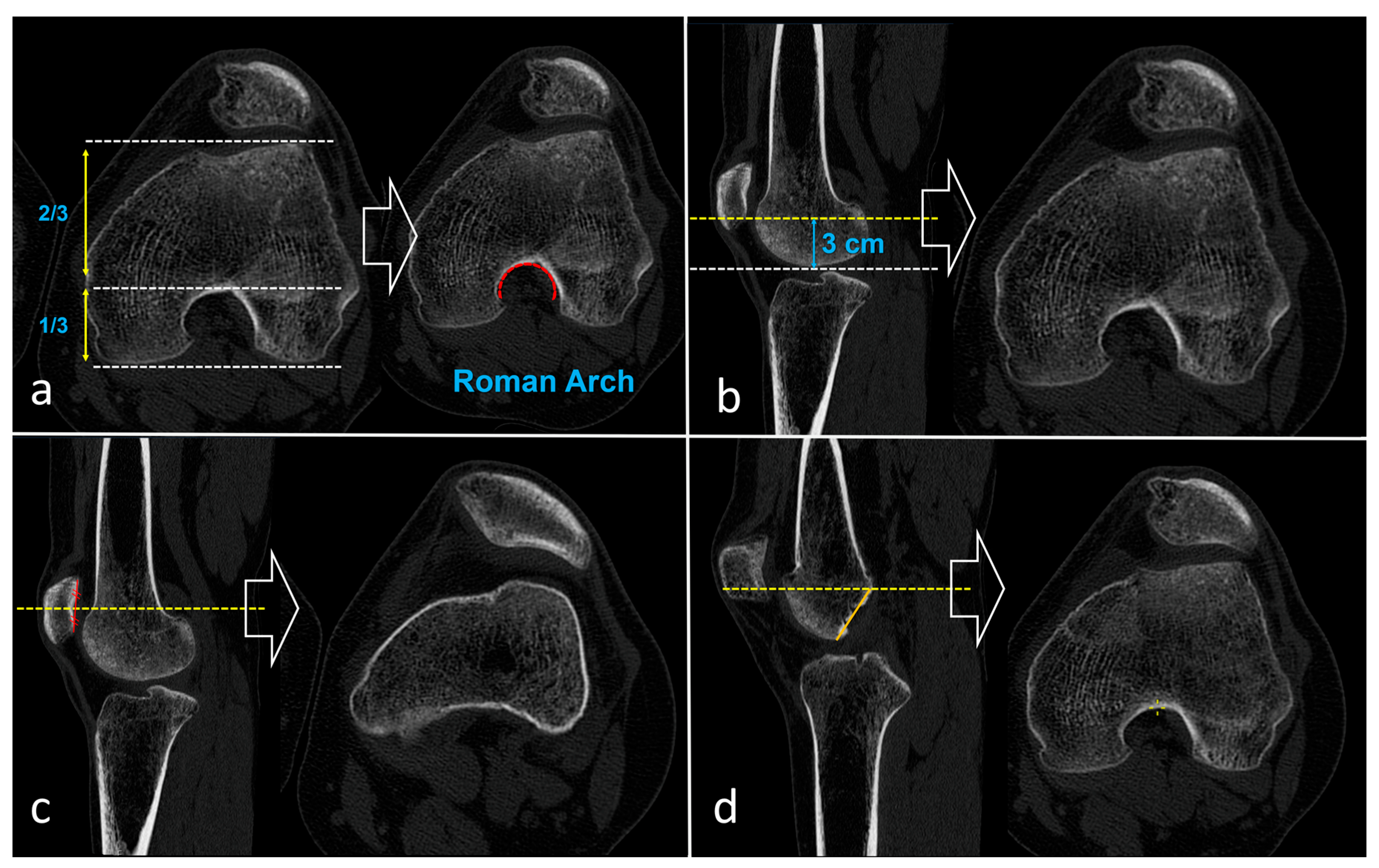 - Tanaka, M.J. Editorial Commentary: Trochlear Dysplasia Is Difficult to Measure, No Matter How You Slice It. Arthroscopy 2021, 37, 1212–1213. [Google Scholar] [CrossRef]