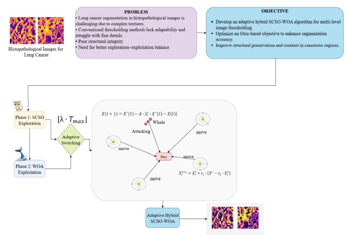 - The proposed adaptive hybrid SCSOWOA method fills a notable gap in the literature where metaheuristic-based segmentation of histopathological images remains limited, thereby contributing algorithmic novelty to both medical imaging and optimization research.