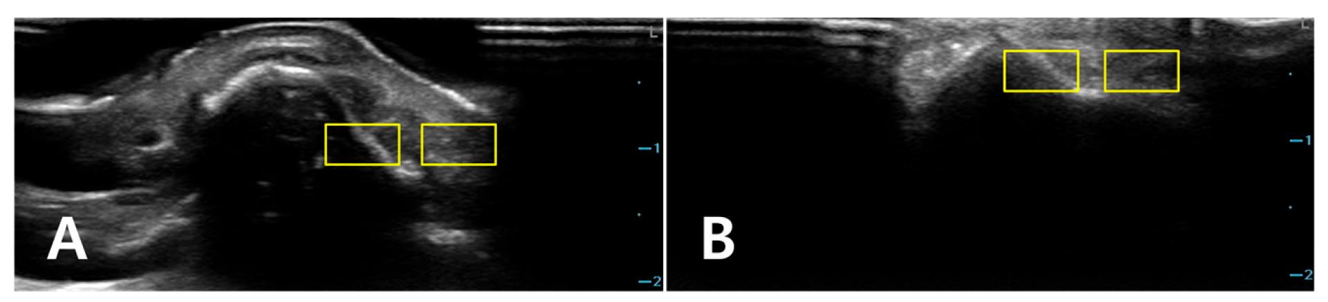 Image acquisition and ROI placement were performed in a strictly standardized order by a single operator/reader, measurement variability was minimized, which likely contributed to the high ICC observed in our analyses. However, interobserver variability was not evaluated in this study because all ROI placement and intensity measurements were performed by a single operator and reader. The reproducibility of these ROI-based metrics across different reader cannot be assumed. Image acquisition technique, probe pressure, frame selection, and ROI placement may vary between operators/readers and could influence CNR and SNR estimates. Therefore, our findings should be interpreted in the context of a single operator and reader workflow, and future studies should include several readers and operators to quantify interobserver agreement and to confirm reproducibility.