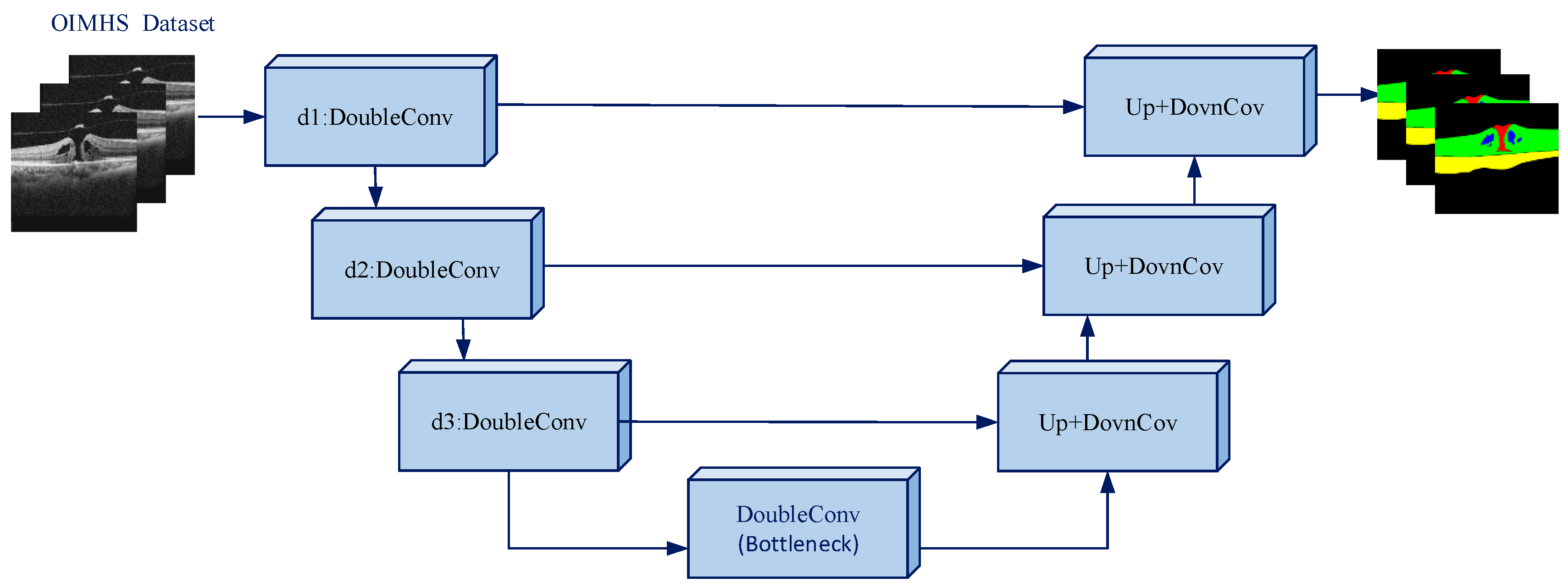 In this study, we propose a U-Net-based system for automatic segmentation of macular holes (MHs) and cysts in OCT images. The experimental setup procedure for the proposed model is detailed below. The hardware and software environments used for the experiments are summarized in