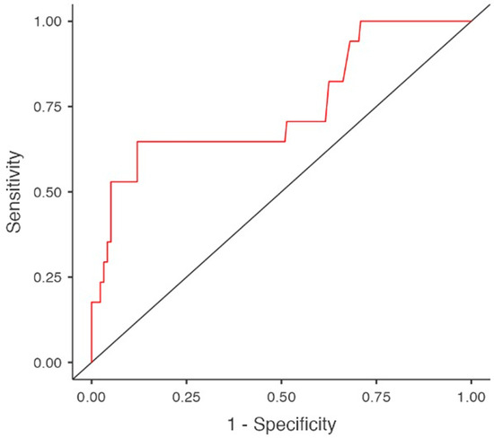 Multivariable logistic regression, yielding a model with a sensitivity of 0.569, specificity of 0.856 and an area under the curve (AUC) of 0.822, did not confirm a definitive association between neoplastic diseases and hypothyroidism. In this predictive model, hypothyroidism was significantly associated with female gender (OR 3.848, 95%CI 1.704–8.693, p = 0.001), BMI (OR 1.072, 95%CI 1.007–1.146, p = 0.031), hypoalbuminemia (OR 0.412, 95%CI 0.177–0.962, p = 0.040), hypertriglyceridemia (OR 1.088, 95% CI 1.001–1.016, p = 0.022) and amiodarone use (OR 6.698, 95%CI 1.744–25.722, p = 0.006), (Table 3 and Table 4, Figure 2).