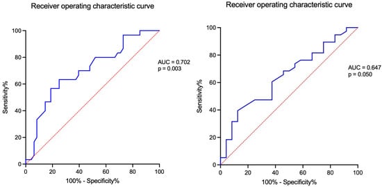 SPSS v.29.0.2.0 (IBM, Armonk, NY, USA), Excel v.16.101 (Microsoft, Redmond, WA, USA), and GraphPad Prism v.10.6.0 (GraphPad Software, Boston, MA, USA) were used to perform the statistical analysis. Continuous variables were reported as mean ± standard deviation (SD) for normal distributions or median (M) and quartiles (Q1, Q3) for non-normal distributions. Categorical variables were presented as counts and percentages. The distribution type of numerical variables was assessed using the Kolmogorov–Smirnov test and visual inspection of histograms. Correlation between numerical variables was evaluated using the Spearman coefficient. Differences between categorical variables were assessed using the Chi-square test or Fisher’s exact test. Comparisons of continuous variables between two independent groups were performed using the independent samples t-test when assumptions of normality and homogeneity of variance were met, and the non-parametric Mann–Whitney U test was applied otherwise. Receiver operating characteristic (ROC) curves were generated to evaluate the association between numerical variables and outcomes, and the area under the curve (AUC) was calculated to assess discriminatory performance. The optimal cut-off value was identified using the Youden index. Multiple linear regression was used to identify independent predictors, and results were reported as unstandardized coefficients ± standard error (B ± SE) and standardized coefficients (β). The selection of independent variables for the multiple linear regression model was based on the unadjusted results of the univariate analyses performed on the dataset. The coefficient of determination (R-squared) was used to assess the explanatory power of the model. A two-tailed p-value < 0.05 was considered statistically significant for all tests.