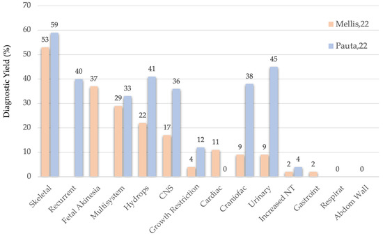 Interestingly, the mean calculated between Mellis and Pauta’s [10,11] diagnostic yield for ES (see Figure 3) and CMA [13], the diagnostic yield of the latter remains relatively stable across anomaly types (generally 4–9%, ranging 0–11%) [13].