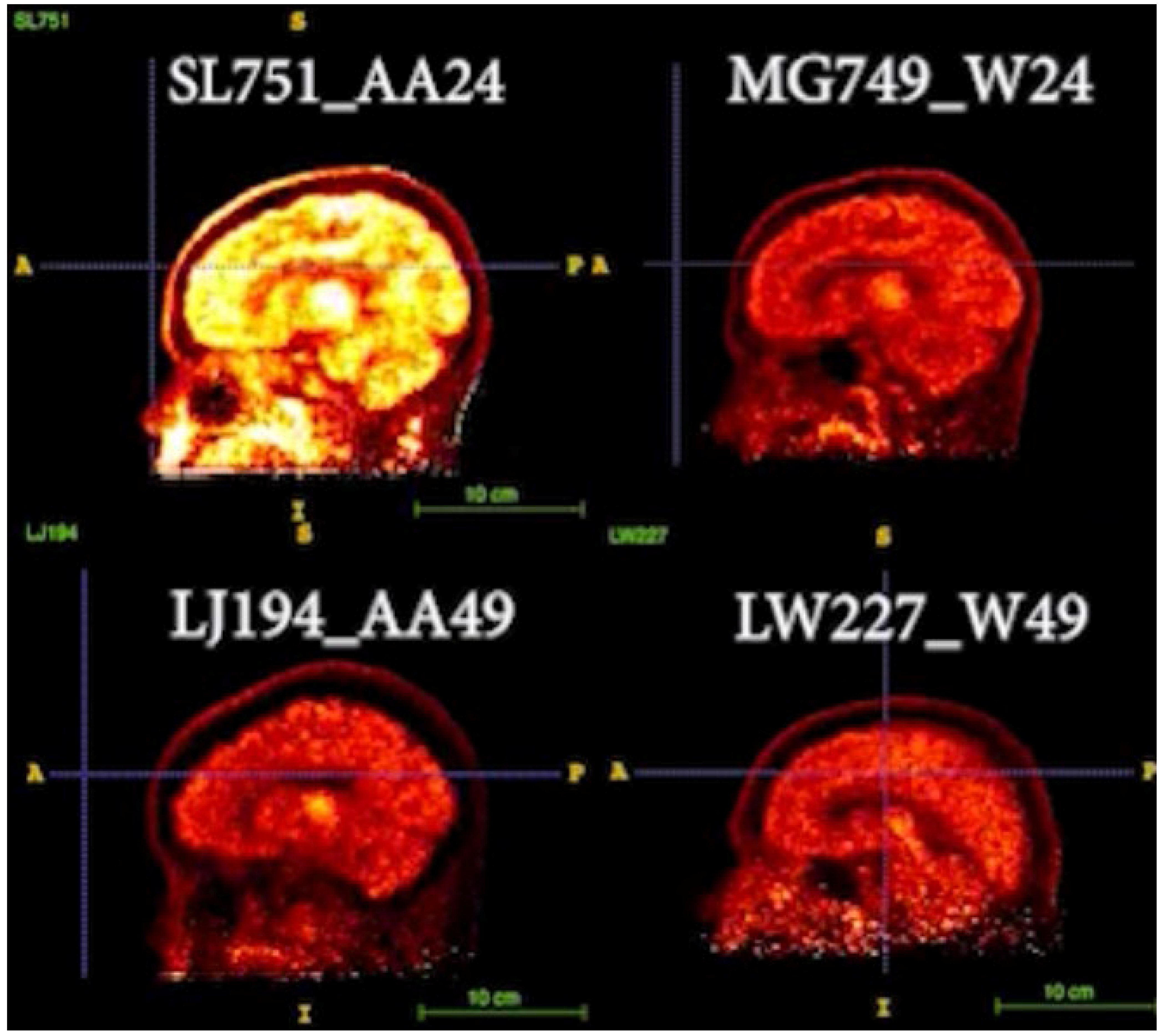- Jagust, W. Imaging the Evolution and Pathophysiology of Alzheimer Disease. Nat. Rev. Neurosci. 2018, 19, 687–700. [Google Scholar] [CrossRef]